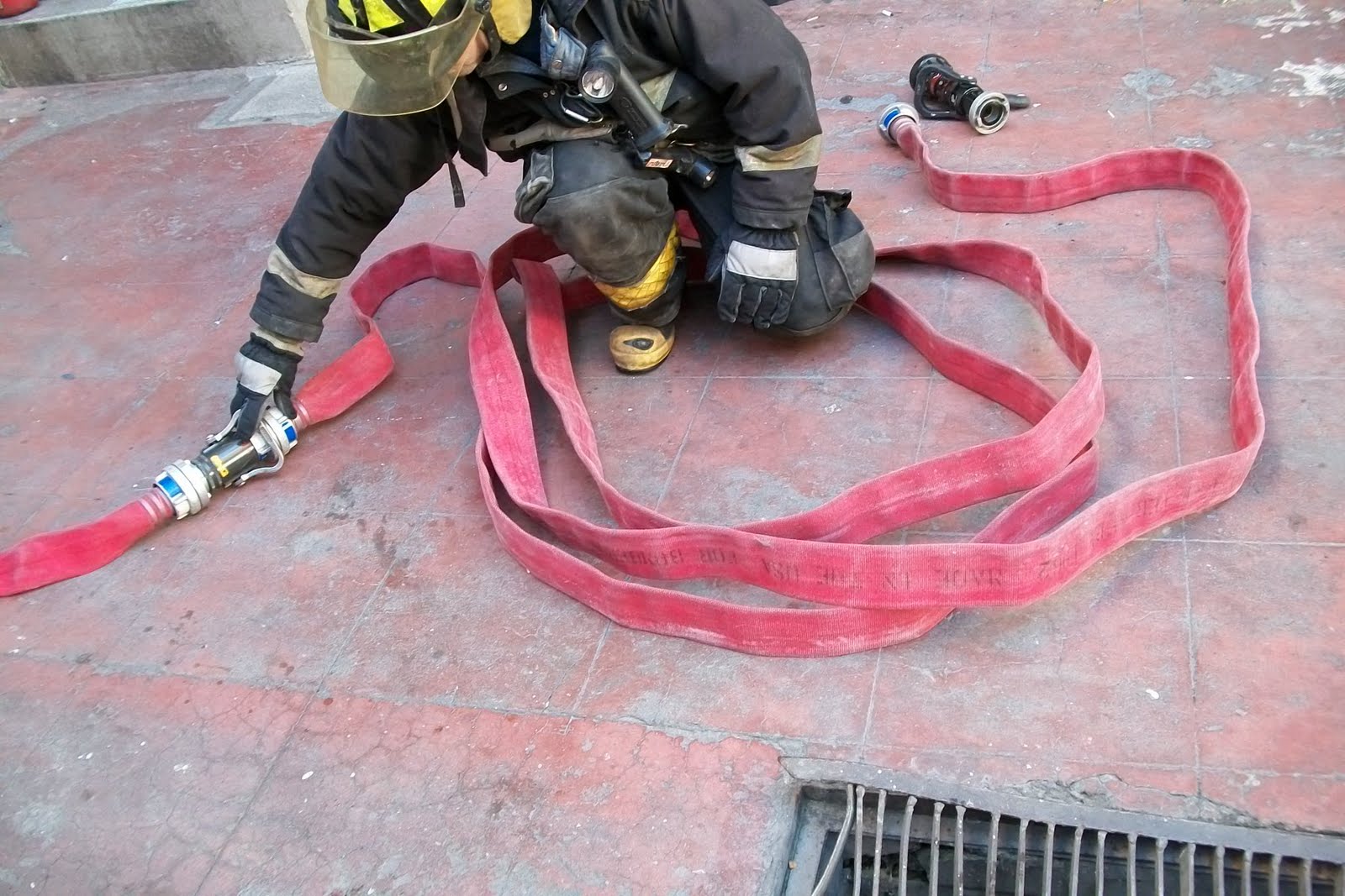 Once all together, the firefighter is ready to charge the line, when suits you.