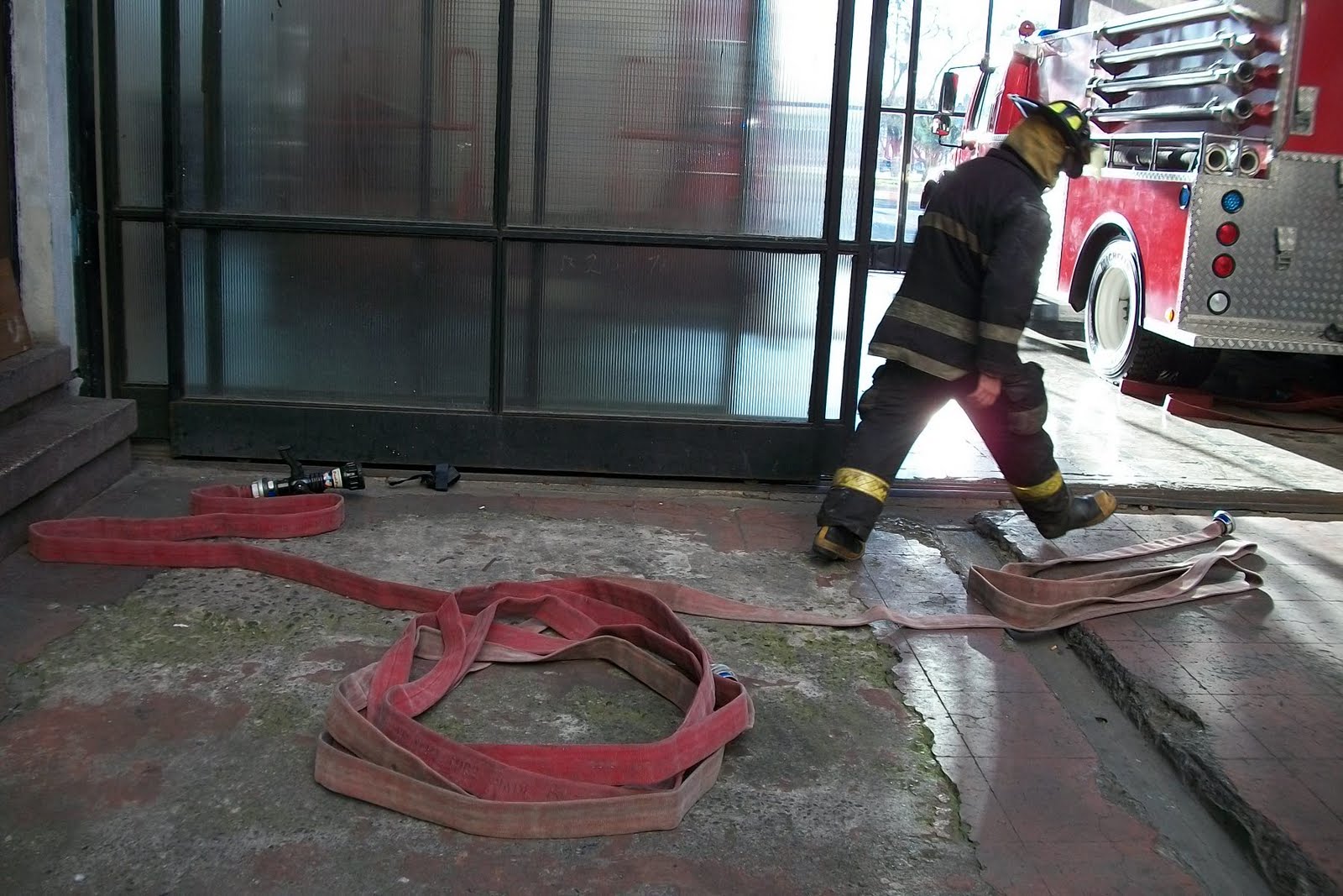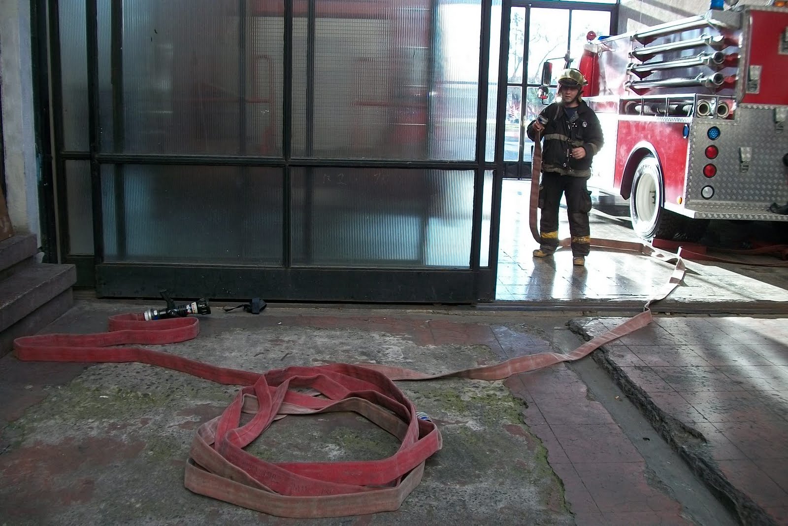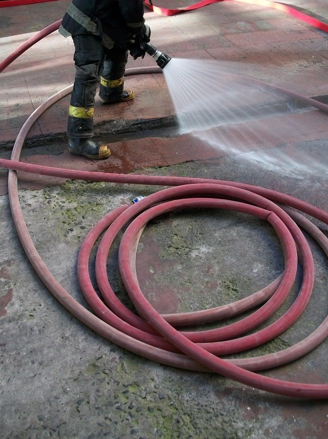 Despite the pitonero remove a section realizes that the two hoses are still too long to extend the usual way in the small courtyard, he pitonero (otherwise) you need not know how many sleeves inside, and as stated the saying "You better not miss on that," therefore, will not pull another hose package provided they do not bother in the courtyard or corridor for the transit of other firefighters and possible evacuation victims. Work only with a hose is not recommended if the property is large.