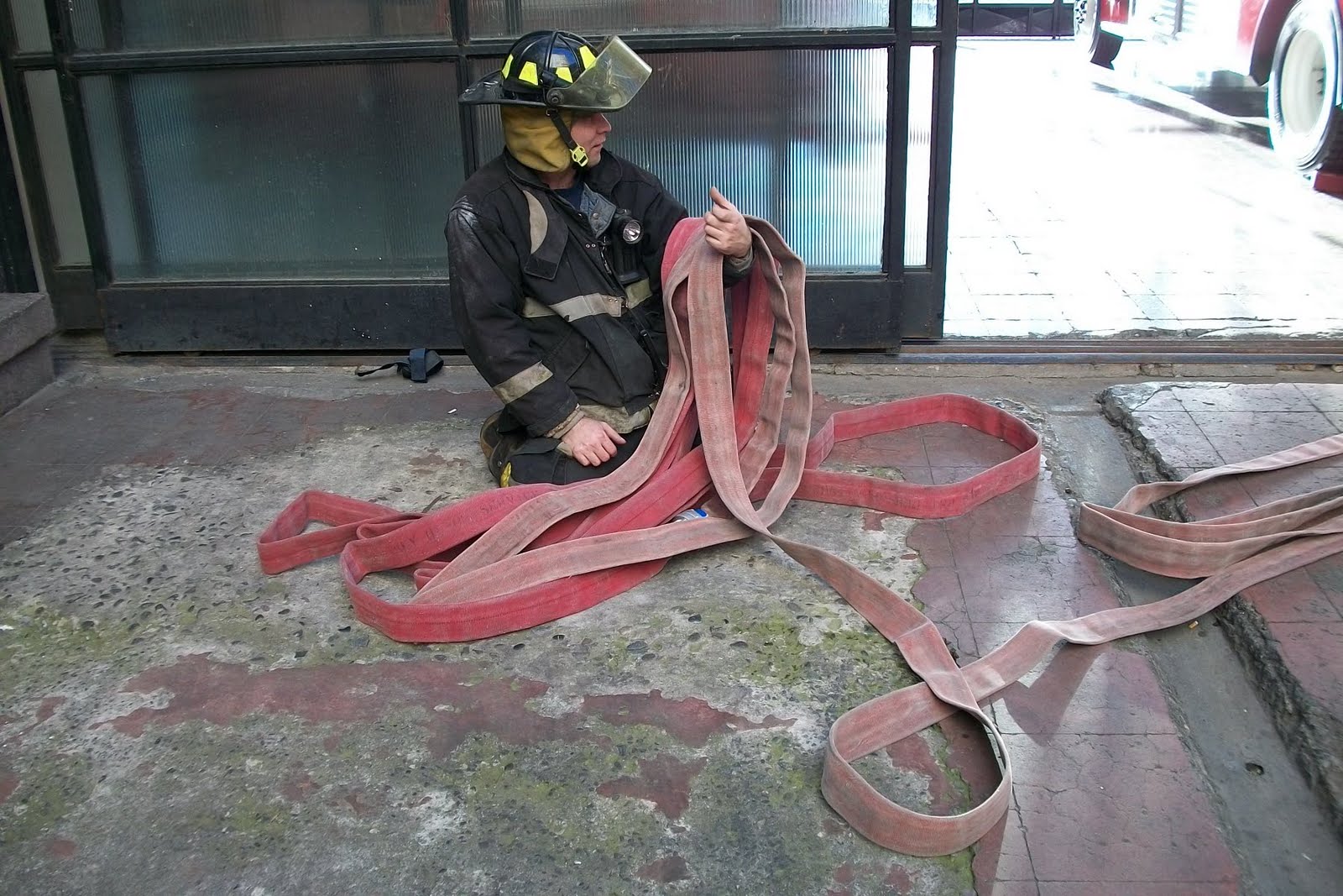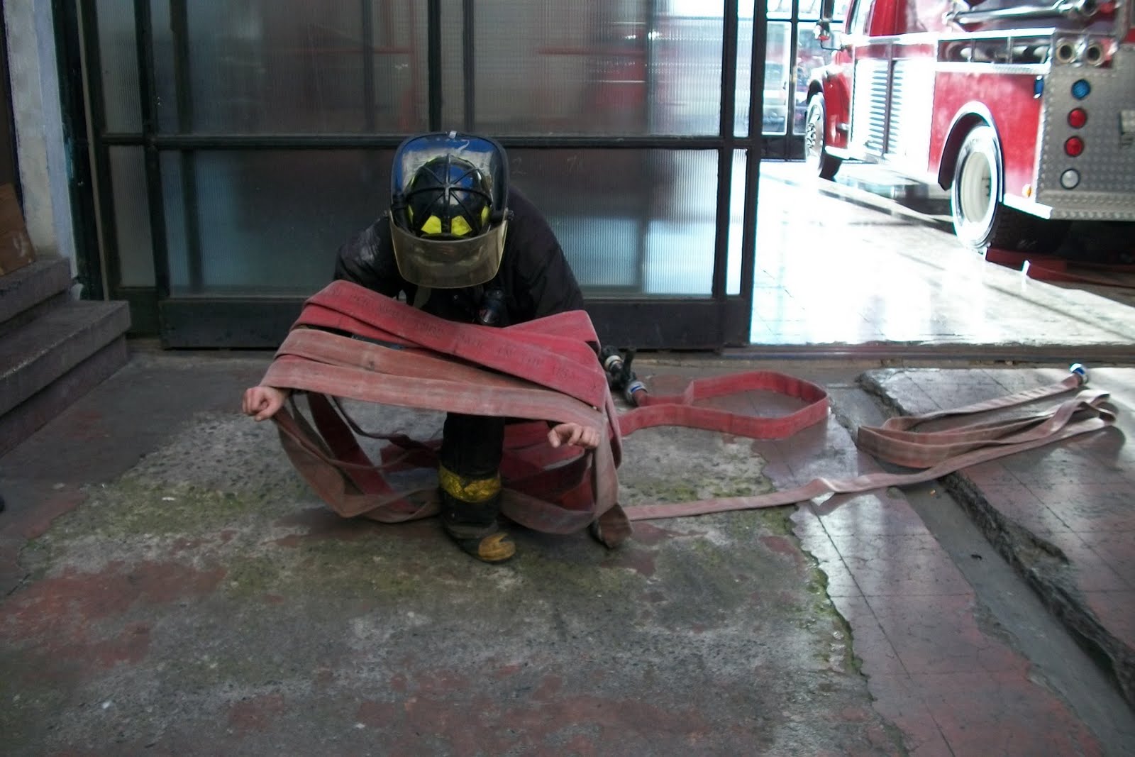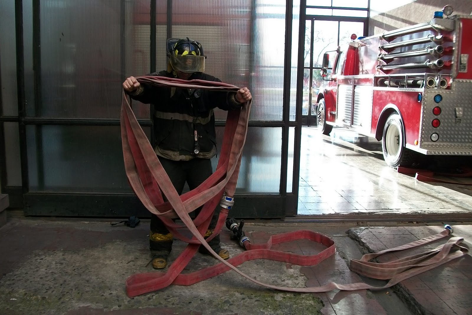Despite the pitonero remove a section realizes that the two hoses are still too long to extend the usual way in the small courtyard, he pitonero (otherwise) you need not know how many sleeves inside, and as stated the saying "You better not miss on that," therefore, will not pull another hose package provided they do not bother in the courtyard or corridor for the transit of other firefighters and possible evacuation victims. Work only with a hose is not recommended if the property is large.